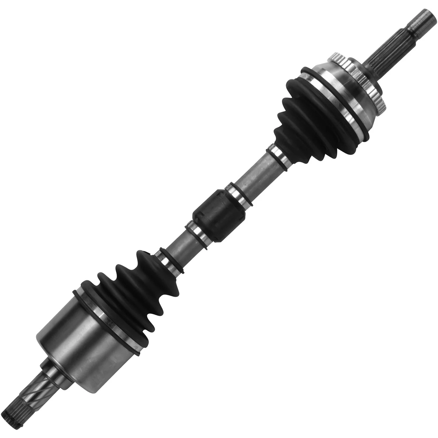 Uppbyggnaden av drivlinan i en Volvo S40 1.8 följer en klassisk framhjulsdriven konfiguration med tvärställd motor. Kraften går från motorn genom växellådan och fördelas sedan till framhjulen via två drivaxlar. Varje drivaxel är utrustad med två knutar: en inre drivknut som sitter närmast växellådan och en yttre drivknut som ansluter till hjulnavet. Den inre knuten är konstruerad för att hantera de axiella rörelser som uppstår när fjädringen arbetar upp och ner, medan den yttre knuten tillåter hjulen att svänga samtidigt som kraften överförs. För Volvo S40 1.8 är det kritiskt att dessa komponenter är exakt balanserade för att minimera vibrationer i chassit. Dessutom sitter en ABS-ring monterad på den yttre knuten eller direkt på axeln, vilken ger nödvändiga signaler till bilens bromssystem. Hela systemet är inkapslat i gummidamasker fyllda med specialfett för att skydda mot smuts och fukt, vilket är avgörande för komponenternas livslängd i det nordiska klimatet med salt och väta.